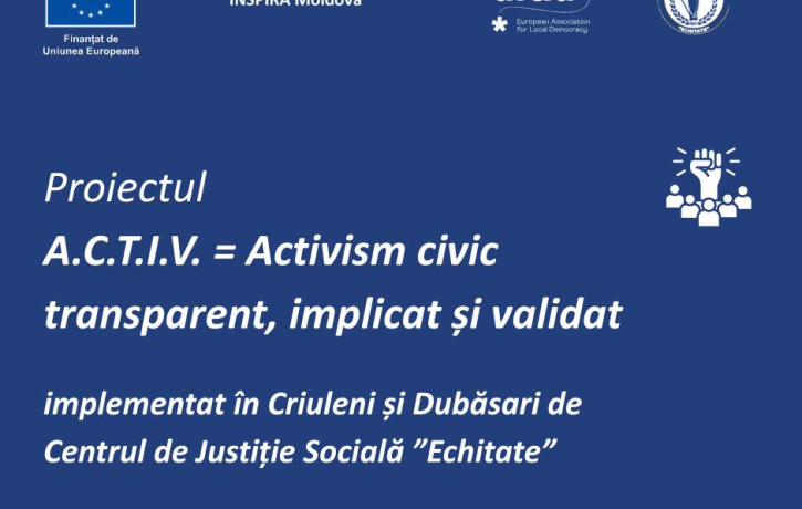 Proiectul A.C.T.I.V. este implementat de Centrul de Justiție Socială ECHITATE și realizat cu suportul financiar al Uniunii Europene, în cadrul proiectului INSPIRĂ Moldova.